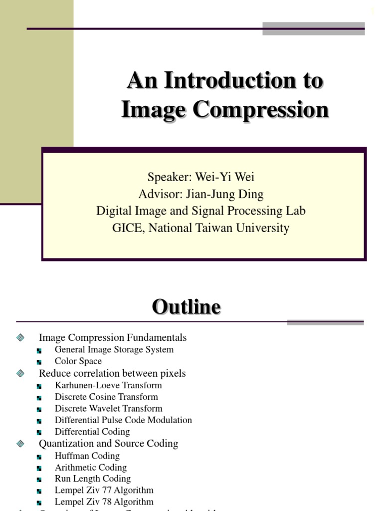 Arithmetic Coding The output from an arithmetic coding process is a single number less than 1 and greater than or equal to 0 This single number can be uniquely decoded to create the exact stream of symbols that went into its construction. Arithmetic coding is a data compression technique that encodes data the data string by creating a code string which represents a fractional value on the number line between 0 and 1. DIP focuses on developing a computer system that is able to perform processing on an image. In this module we introduce the problem of image and video compression with a focus on lossless compression. It is an entropy encoding technique in which the frequently seen symbols are encoded with fewer bits than rarely seen symbols. Digital image processing deals with manipulation of digital images through a digital computer. Spatial and temporal redundancy 3. Arithmetic coding for image compression. N pr k L n.