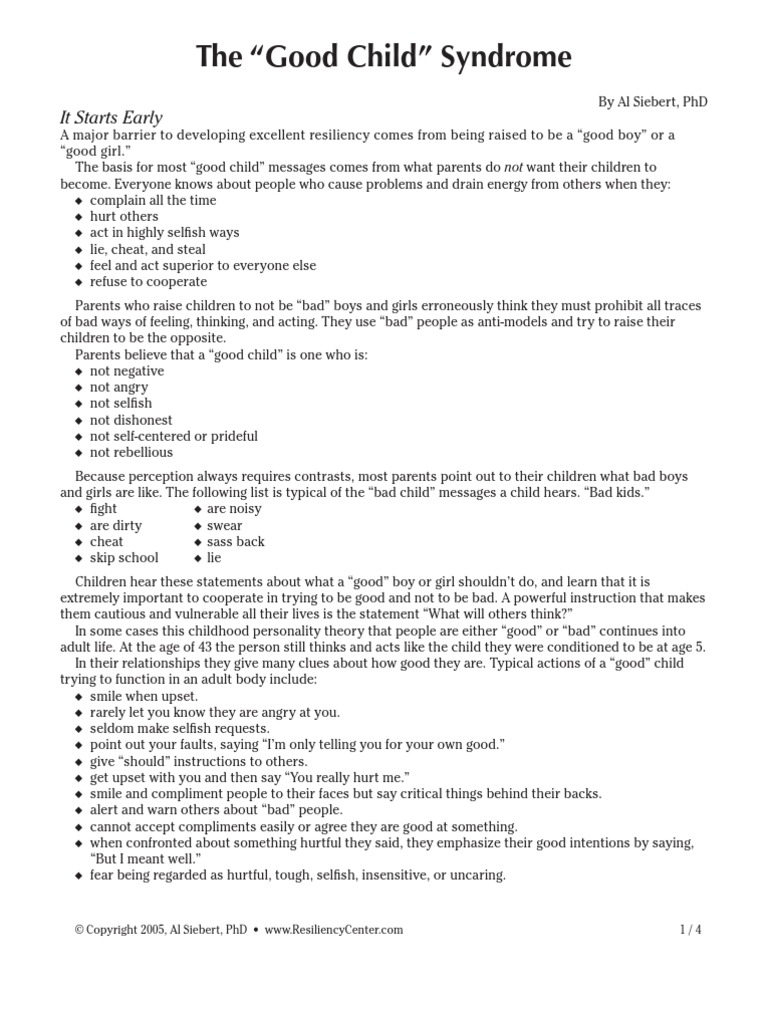 What Is Good Child Syndrome. One author writes Being properly mature involves a frank unfrightened relationship with ones own dark sides complexities and ambitions.