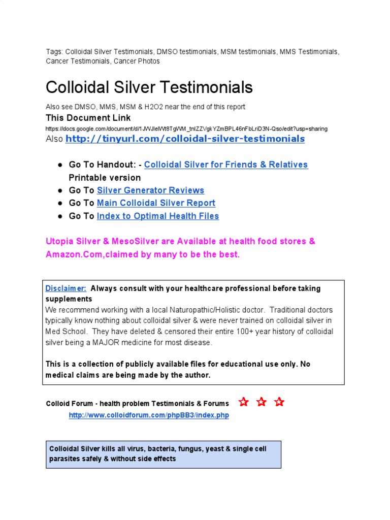 Cowdens research examined the effects of TOA-free Cats Claw on 28 people who had confirmed Lyme Disease. There is no scientific backing to support the use of colloidal silver in treating back pain or any other ailment 1. The inflammation infection around the heart recurred several times until I started taking colloidal silver. I also discovered that the colloidal silver at Vitamin Barn was a good brand but that Mesosilver was the best available so my friend and I agreed we should switch to Mesosilver. Brent Bauer of the Mayo Clinic 1 4. More Colloidal Silver Testimonials. But none of them did the trick in the last 4 years and not for my 5 year old either who got lyme at 11 mos and we were both treated the day we got the tick bite. I am only explaining how I got well. In researching colloidal silver because I was concerned about overdosing I discovered that it could also treat Lyme disease.