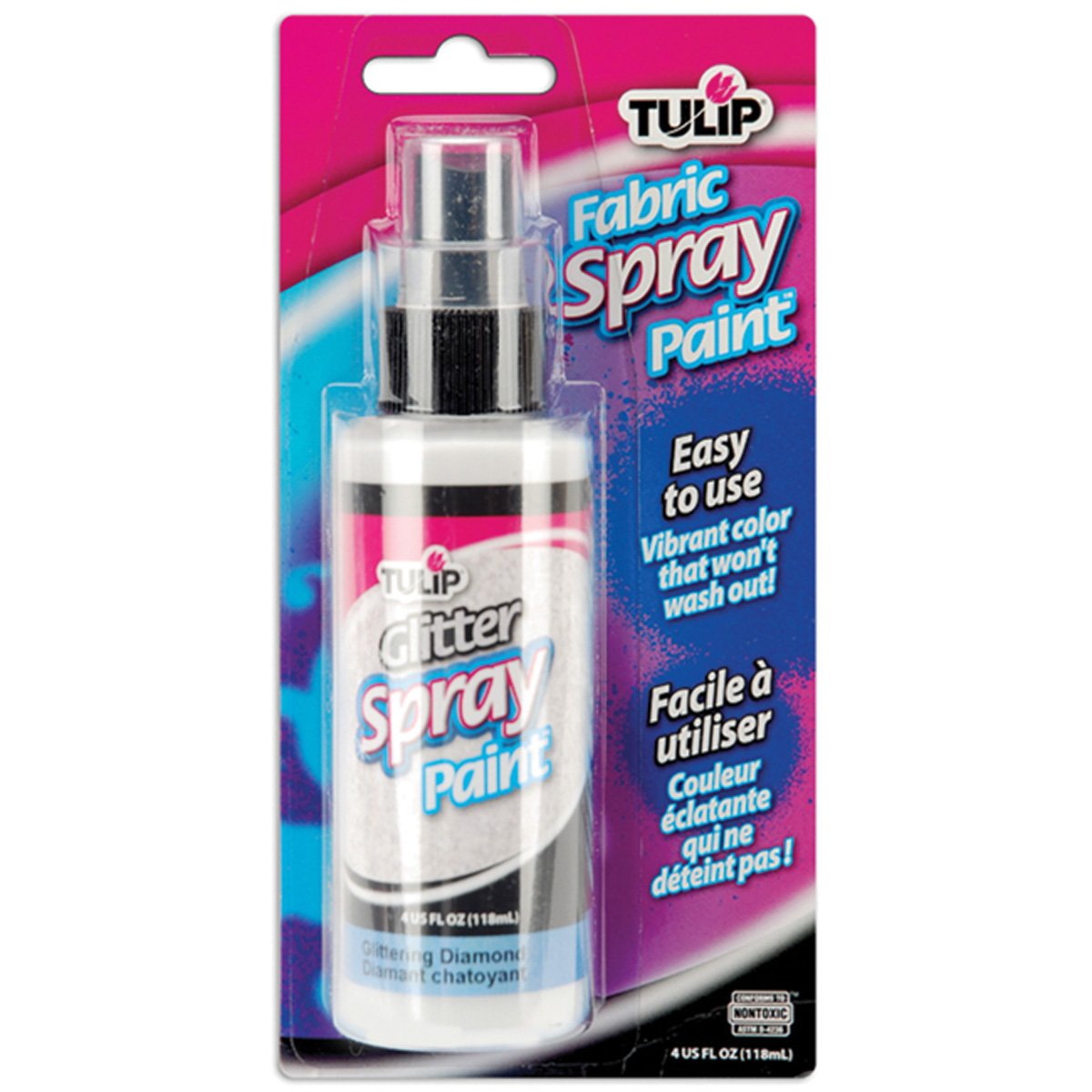 Non-aerosol Instant Fabric Spray Paints. Glitter Fabric Paint by Tulip 125 oz.