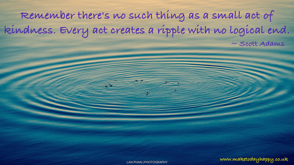 Kindness ripple effect quotes. One kind action leads to another. Every act creates a ripple with no logical end. The Kindness Ripple effect in action.